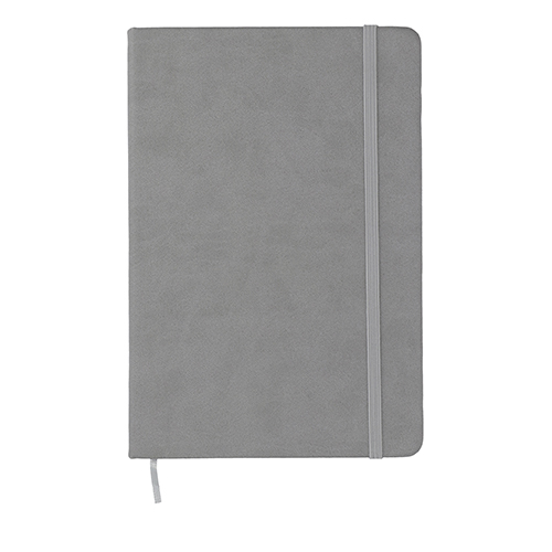Libreta de poliuretano con 96 hojas de raya, banda elástica para sujetar cubierta y textura.